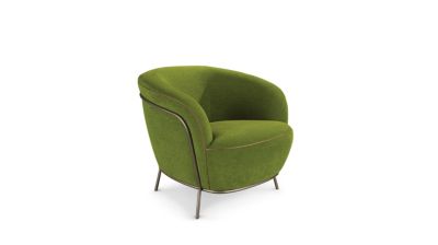 Showcasing a beautiful round shape, the Médiane model exudes comfort and fits perfectly into small spaces. The combination of the Bronze patina on it's metal structure and contrasting piping elegantly highlights the silhouette. With its soft fabric i...