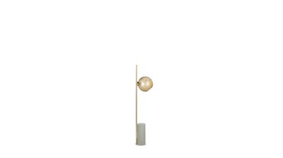 Tube and ball are two simple shapes that combine seamlessly in this lamp, halfway between mood lamp and directional spotlight, ennobled by the rich combination of metal and glass paste.