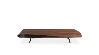 Like a sheet of walnut folded and bent upon itself on all four sides, the Calligraphie Cocktail table is a soft and organic origami-like structure that delicately rests on it's slender legs. The space left free by two units allows for storing books a...