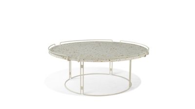This collection features an elegant steel wire structure with a chrome-plated, black chrome-plated or matte gold finish. The tray is available in marble or antique bubble glass with a transparent or colored finish, a material resembling simmering wat...